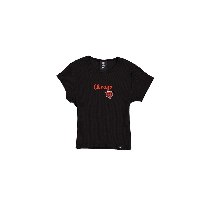 The Chicago Bears Sport Classics Women’s Baby Tee features a chain-stitched Bears wordmark and an embroidered team logo at the front.