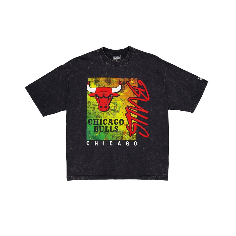 The Chicago Bulls Sport Classics Boxy Black T-Shirt features a screen-printed Bulls logo and design at the front with a boxy fit and mineral wash fabrication.