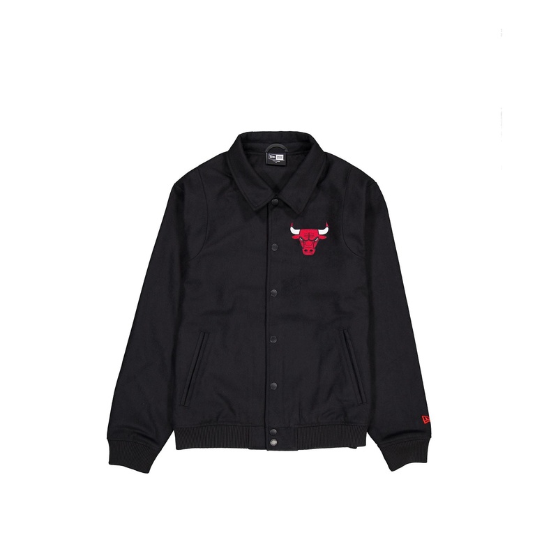 The Chicago Bulls Sport Night Jacket features an embroidered Bulls logo at the left chest with a snap button closure and a twill applique team wordmark at the rear.