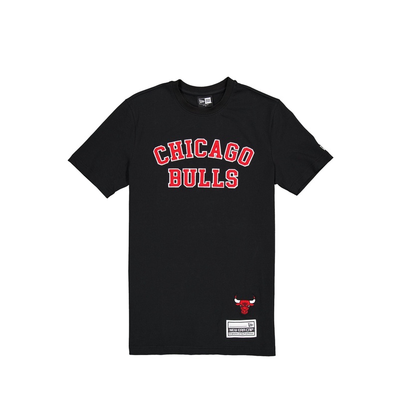 The Chicago Bulls Team Color Logo Select T-Shirt features a zig zag stitched twill applique Bulls wordmark at the chest with an embroidered team logo above a jock tag at the left hip.Fabric: 93% Cotton, 7% Spandex