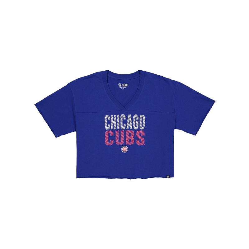 The Chicago Cubs Active Women’s V-Neck T-Shirt features a screen-printed Cubs wordmark above a team logo at the front.