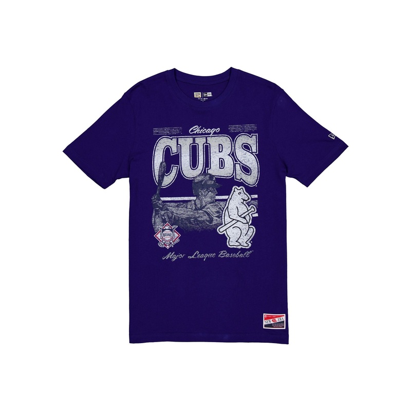The Chicago Cubs Throwback Distressed T-Shirt features a distressed screen-printed Cubs graphic at the front.