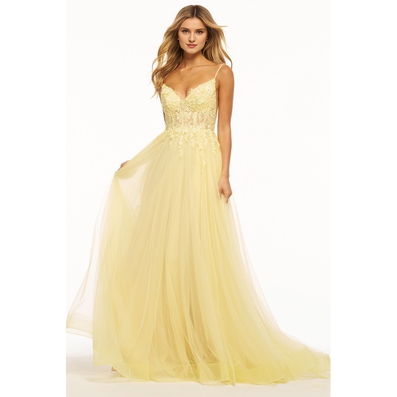 Chiffon A-line dress with lace back straps and floor length Prom dress