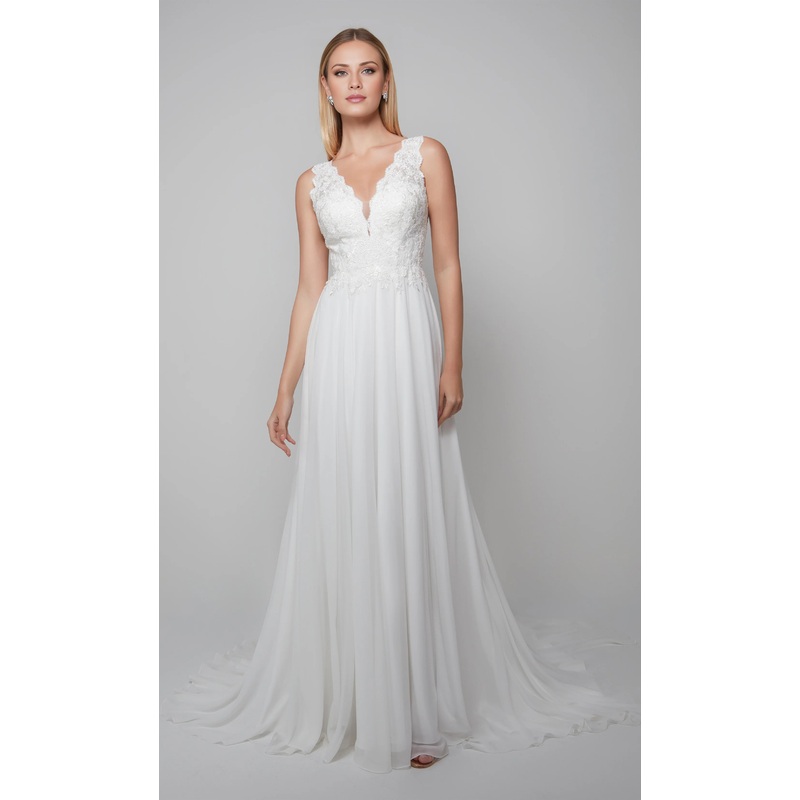 Chiffon deep V-neck A-line floral lace tight corset and floor length wedding dresses
