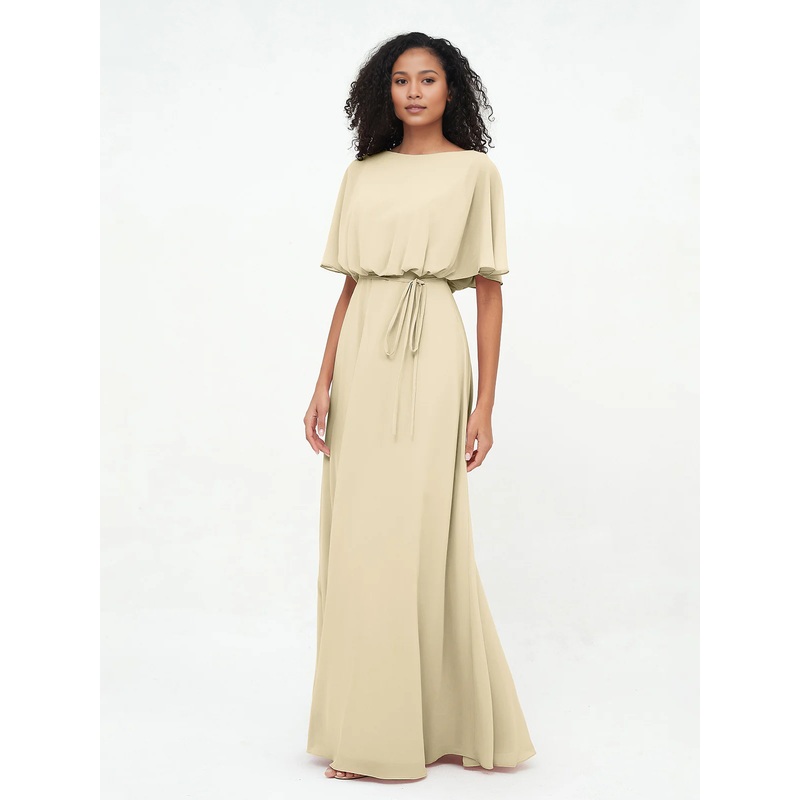 Chiffon full-length wrapped bridesmaid dress