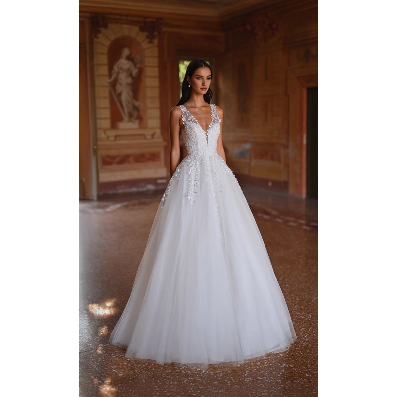 Chiffon lace deep V-neck fantasy back lace decal wedding dresses