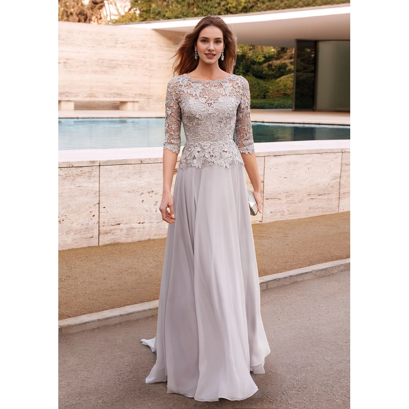 Chiffon lace phantom neckline lace ruffle top formal long mothers of the bride dresses