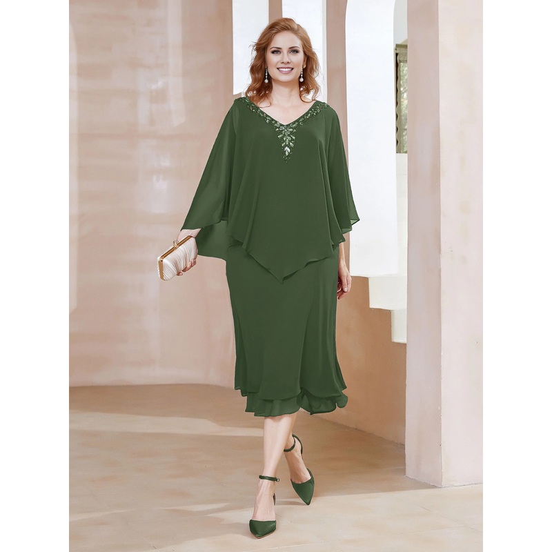 Chiffon V-neck ruffle sleeves mother of the bride dress