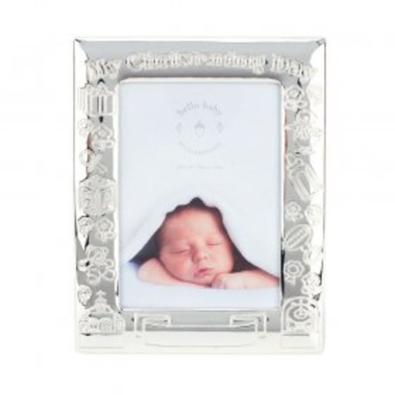This photo frame is engraved at the top with ‘My Christening Day’ with further engraved detailing of a church, teddies and more