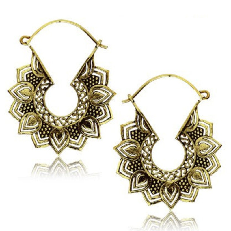 These 18 gaugecina earrings are cast from solidyellow brass and approximately 46mm high x 36mm wide.