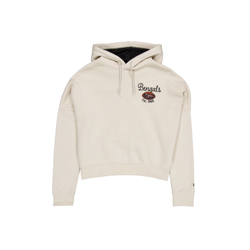 The Cincinnati Bengals 3rd Down Historic Women’s Hoodie features a glitter embroidered Bengals patch and team wordmark at the left chest.