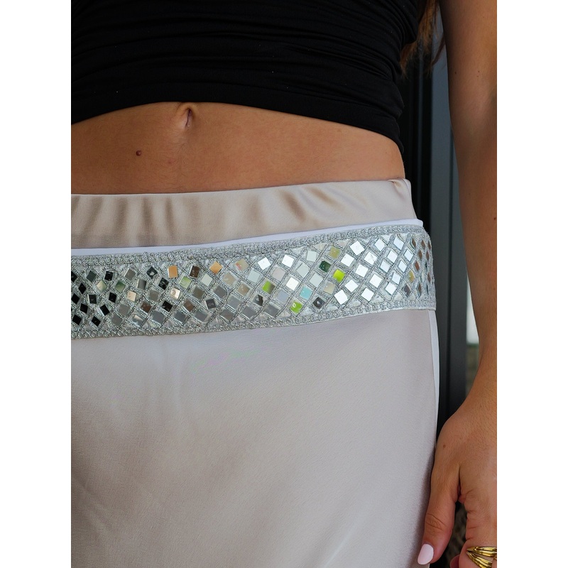 Conturn de espejos y cristales. Est en tendencia y se lleva mucho.Se anuda a la cintura con la cinta. Est hecho a mano y por tanto, no son perfectos y tienen piezas irregulares, siendo este el encantado del cinturnde espejos.Este articulo esta diseado en E