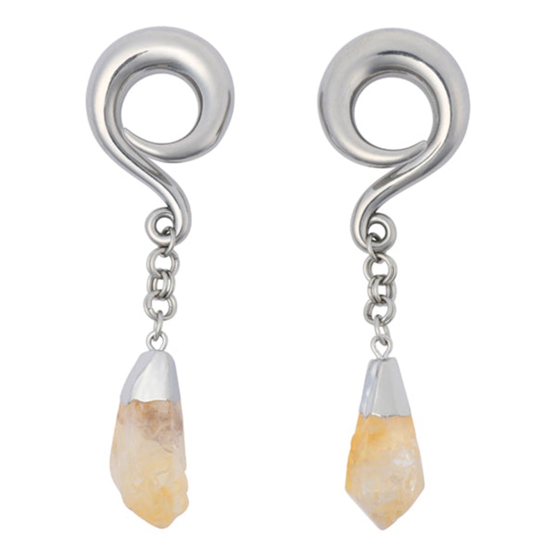 Thesecitrine chunks are suspended from 316L stainless steel coils. Eachone is unique and will vary in size, color and dimensions. Choose your size below.