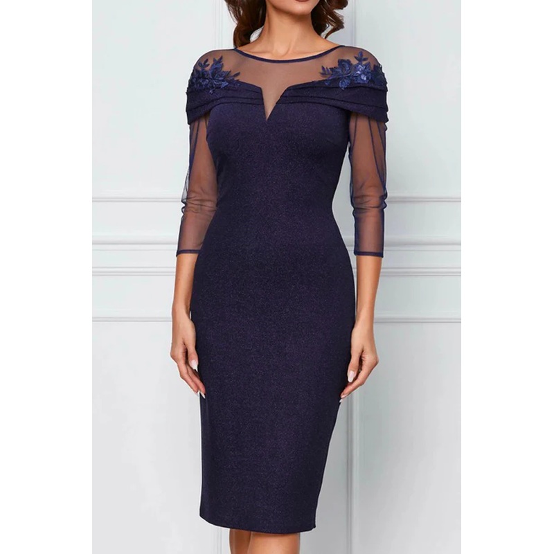 Classic round off the shoulder decal sheer sleeves mother of the bride dress