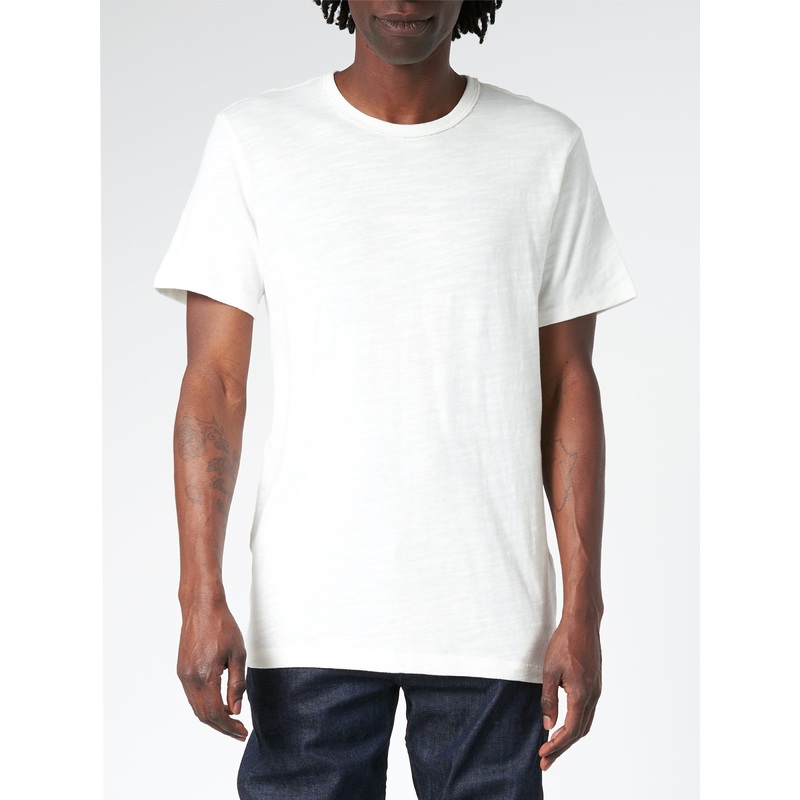 Rag and Bone’s Classic Tee is short-sleeved and a branding detail on the bottom hem. The t-shirt is made of slub cotton jersey, a lightly textured fabric that offers comfort and drape.