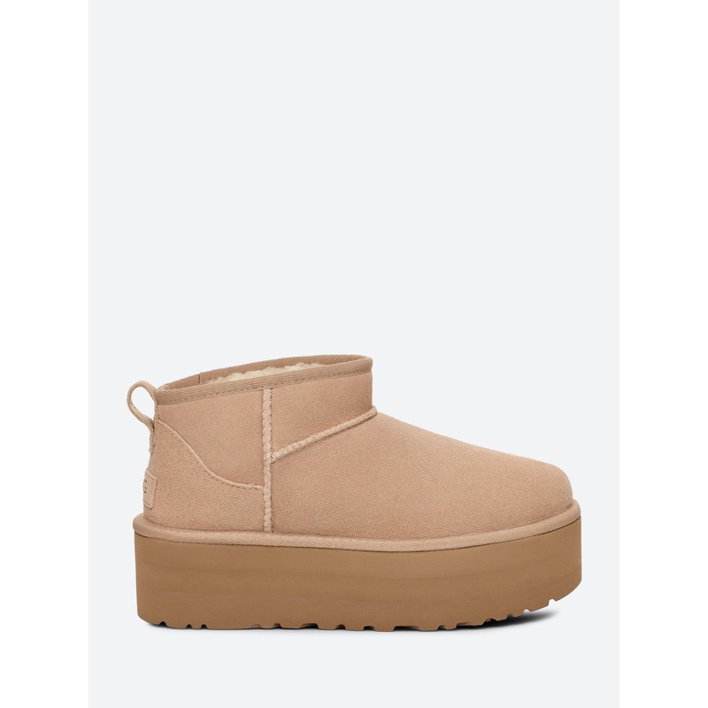 A modern interpretation of an UGG icon, the Ultra Mini reaches new heights with a leg-lengthening 2" platform. Offering a bolder look than ever, it's made with the same rich suede as the original, plus UGGplush wool blend for signature softness.Ankle heigh