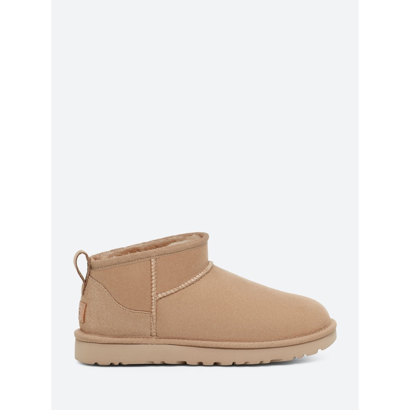 The Classic Ultra Mini updates UGG's most iconic silhouette with a lower shaft height, adding easy on-off and enhanced versatility.Ankle heightAsymmetrical toplineOverlock stitch detailing on seamsRear pull tabSuede heel counterLeather heel label with embo