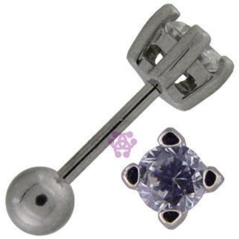 The 18 gauge cz round cartilagebarbell is made from externally threaded 316L stainless steel. Only the ball end is removable. The round gem is available in clear only.