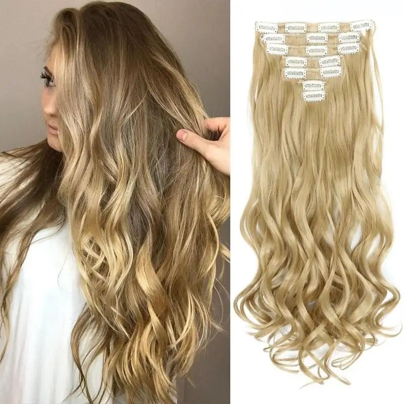 Clip-on Hair Extensions 6pc Set6Pcs/Set 24" Hairpiece 140G Straight 16 Clips In Heat Resistant Hair Synthetic Clip InsSeveral Colours to Choose from!Items per Package: 6pcs/setWeight Per Package: 140g/SetWide of Weft: 10 inches with 5 clipsMaterial Grade: