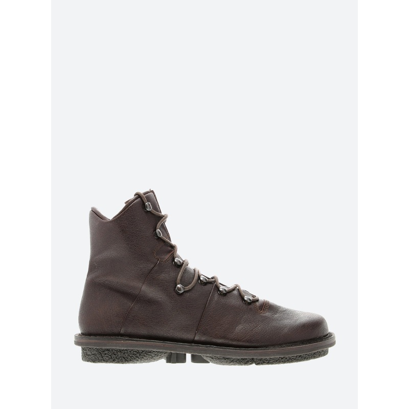 Trippen lace-up boot featuring hooks and eyes in the style of classic mountain boots.