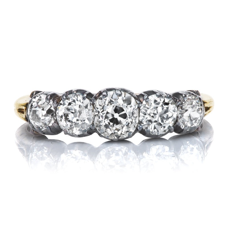 Antique Ring with Five Old Cut Diamonds in Collet SettingThe Colette ring is an authentic antique diamond ring from the Victorian Era circa 1830. The ring features five Old European Cut diamonds all combining for approximately 1.40 carats of I-J color, VS-