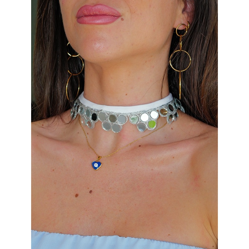 Collar tipo choker de espejos y cristales. Est en tendencia y se lleva mucho.