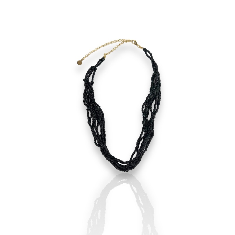 Collar multi de perlas en color negroEstn hechos de acero quirrgico. Este material no pierde el color y no es alrgico.Material: acero alergnicoEste articulo esta diseado y fabricado integramente en Europa e importado por Sorellas