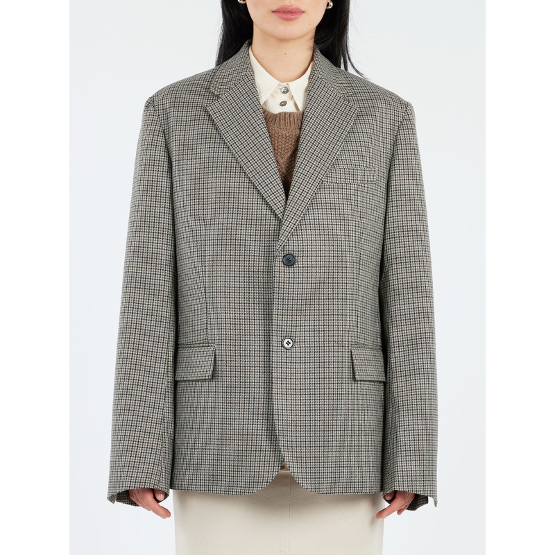 Sofie D’Hoore breasted oversized blazer with notched lapels in wool houndstooth.