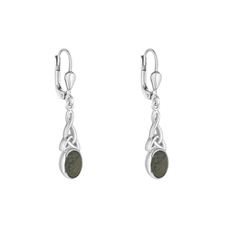 CONNEMARA MARBLE LONG TRINITY KNOT DROP EARRINGS