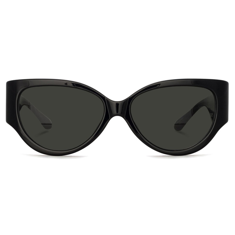 Handcrafted from exquisite acetate, the Linda Farrow // Connie showcases elegant cat-eye sunglasses meticulously hand-polished to achieve a luxurious high-gloss finish. Adorning the temples are the brand's signature 22-carat gold-plated logo eyelets, a hal