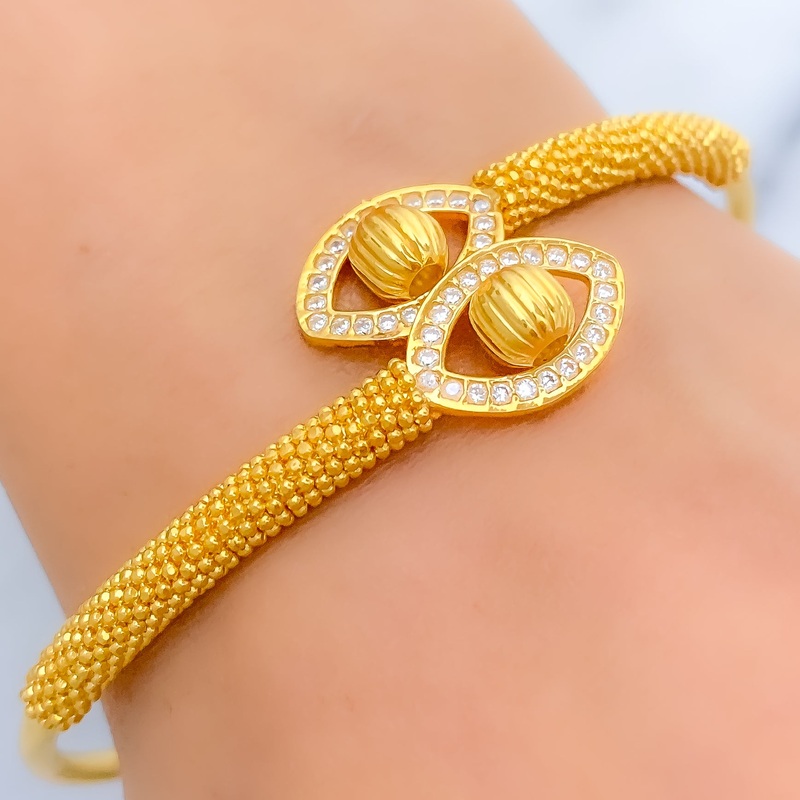 Majestic Bold Jali 22k Gold Bangle w/ Tourmaline