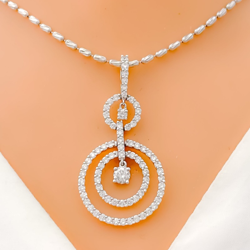 Refined with a modern twist, this 18k white gold pendant weighs 3.6 grams and features a captivating 1.54ct arrangement of round brilliant-cut diamonds in F-G color and VS clarity. Its elegant halo drop design exudes sophistication, making it a standout accessory for both day and evening wear. Versatile and radiant, it adds polished sparkle to any chain.