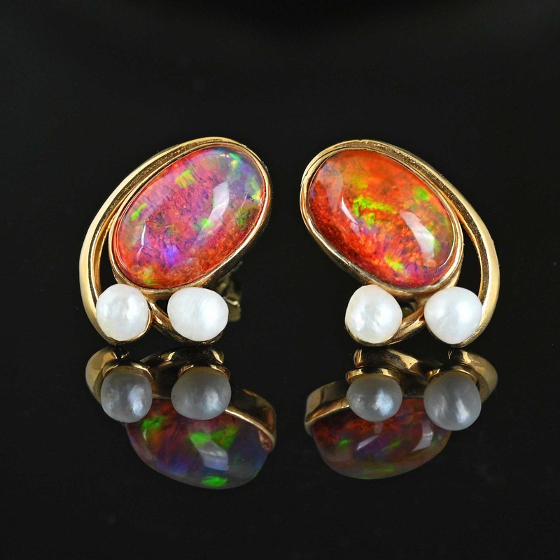 Condition: Very good with no chips or nicks to the opals which have a wonderful flash of color. A great pair of studs!
