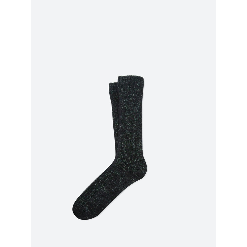 Solid coloured crew socks in ribbed mohair knit with subtle lurex sparkle.