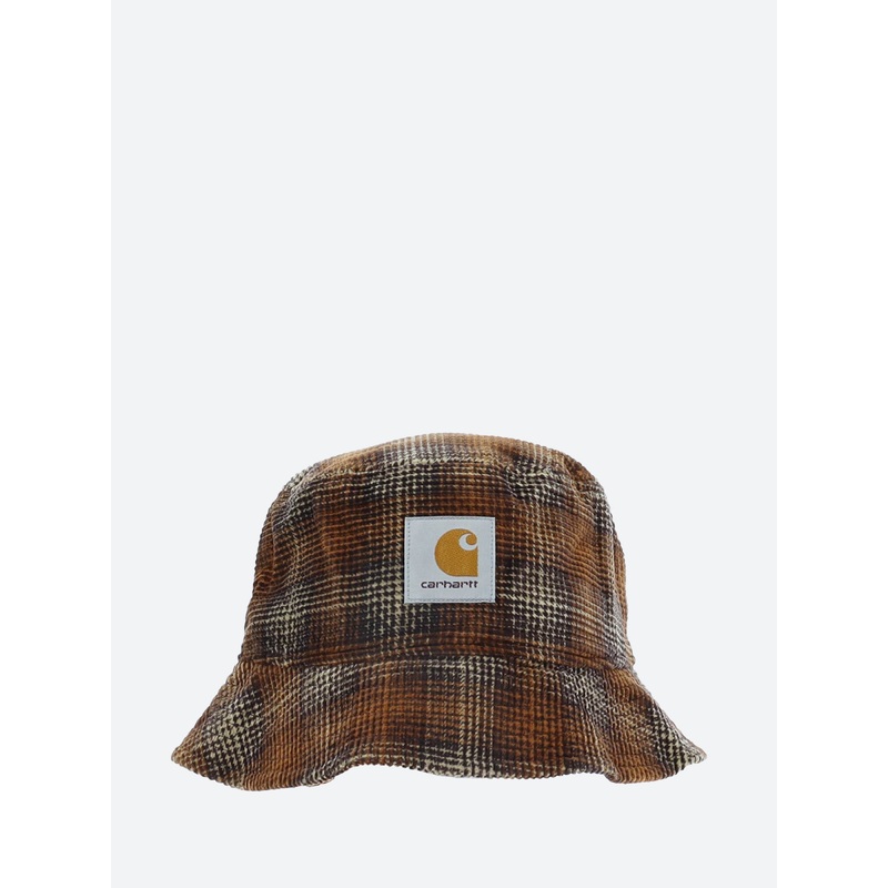 Bucket hat made from medium wale corduroy with a Carhartt logo on the front.UnstructuredLinedFive panelSquare labelMaterialsFabric Content: 100% cotton corduroy, 8 wales, 310 g/sqmSize GuideS/M: 57 cm - 22.4 inchM/L: 59 cm - 23.2 inchL/XL: 61 cm - 24 inchF