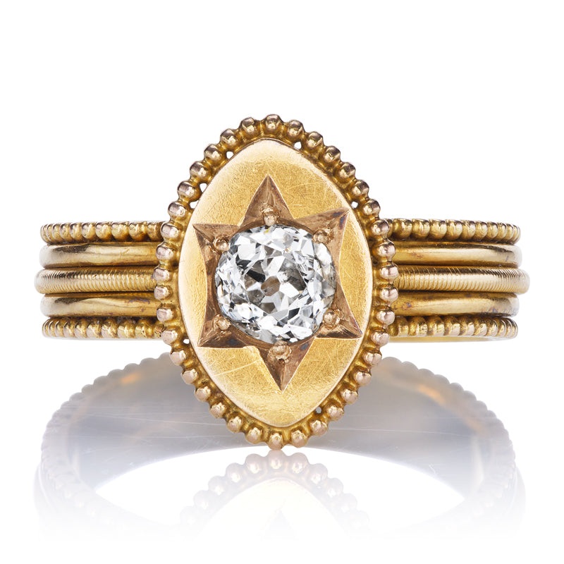Celestial Victorian Era Old Mine Cut Diamond Ring with Star Details