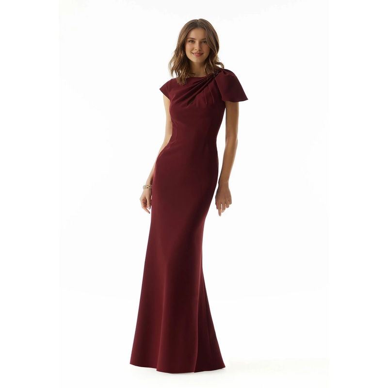 crepe fabric one neck short sleeved tight corset shoulder bow evening dress