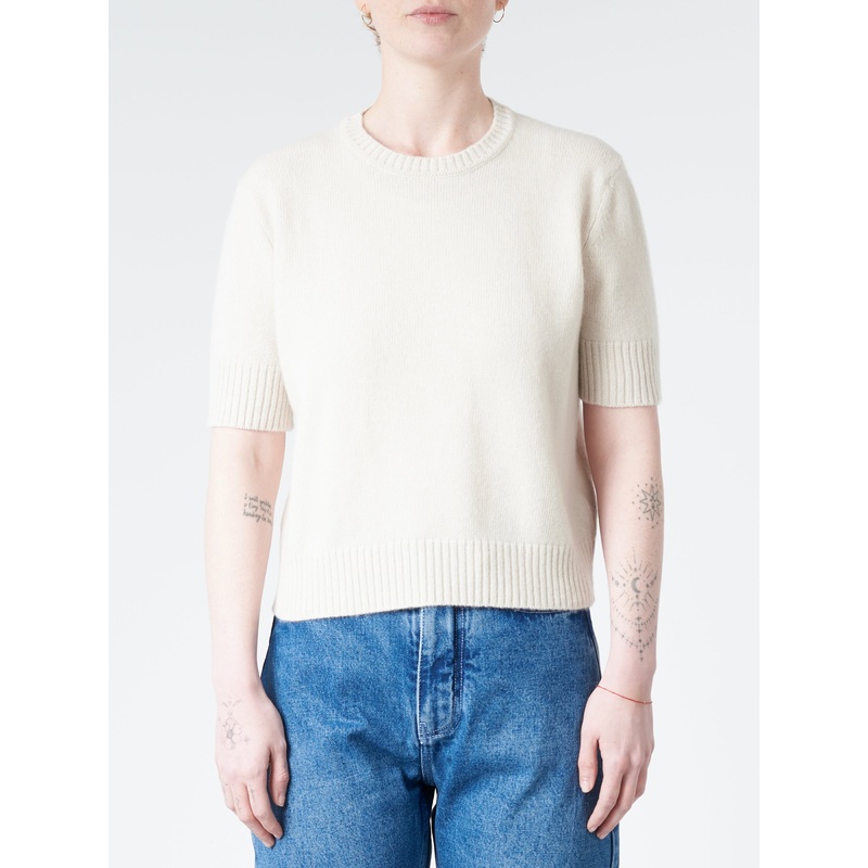 Classic crewneck t-shirt knit from a cashmere-wool blend for a luxuriously soft feel.Crew necklineElbow length sleevesRibbed neck, cuffs, and hemSlightly cropped fitMaterialsFabric Content: 70% wool, 30% cashmereMade in ItalySize GuidePascale wears size S.