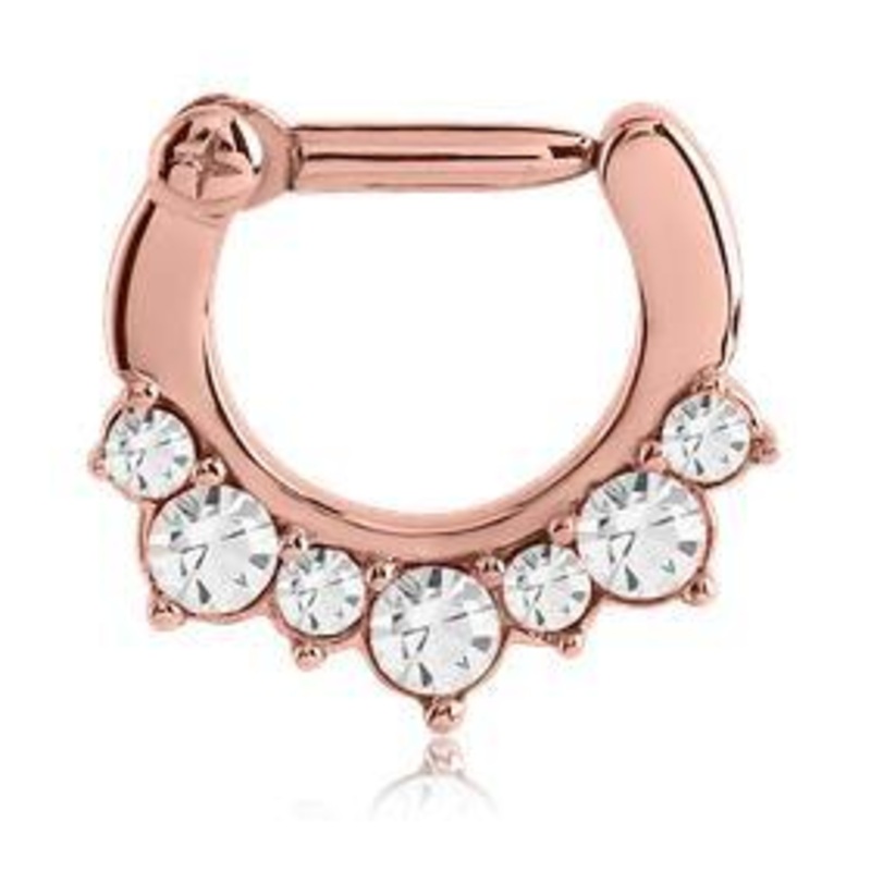 Crown CZ Rose Gold Septum Clicker 16g – 1/4″ diameter (6mm) Clear Rose Gold Stainless