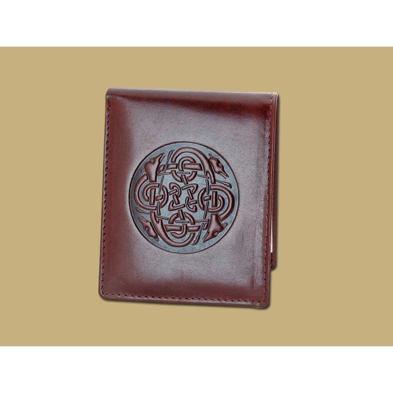 - Zoomorphic Celtic embossing of 4 hounds, which contrasts well on the leather.