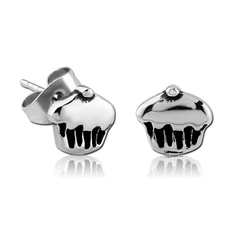 Cupcake Stainless Stud Earrings 20 gauge Stainless Steel Pair