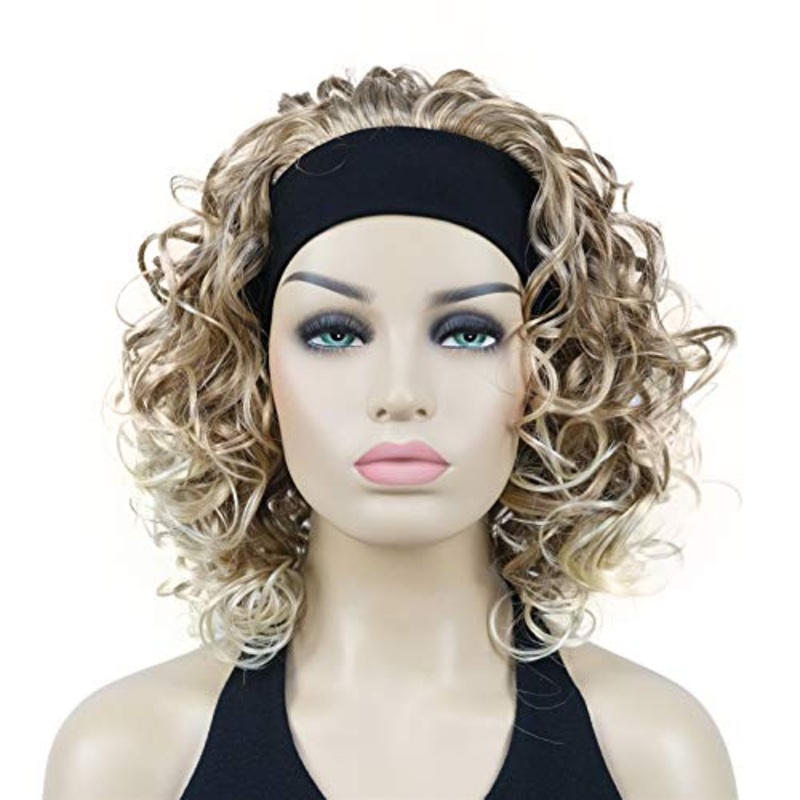 Curly Mixed Blonde 12 " Headband Wig-Top quality synthetic hair fiber wig.Soft and natural, human hair like sheen, realistic looking, light and breathable makes you feel very comfortable, just like your own natural hair.Average cap size (one size fits most