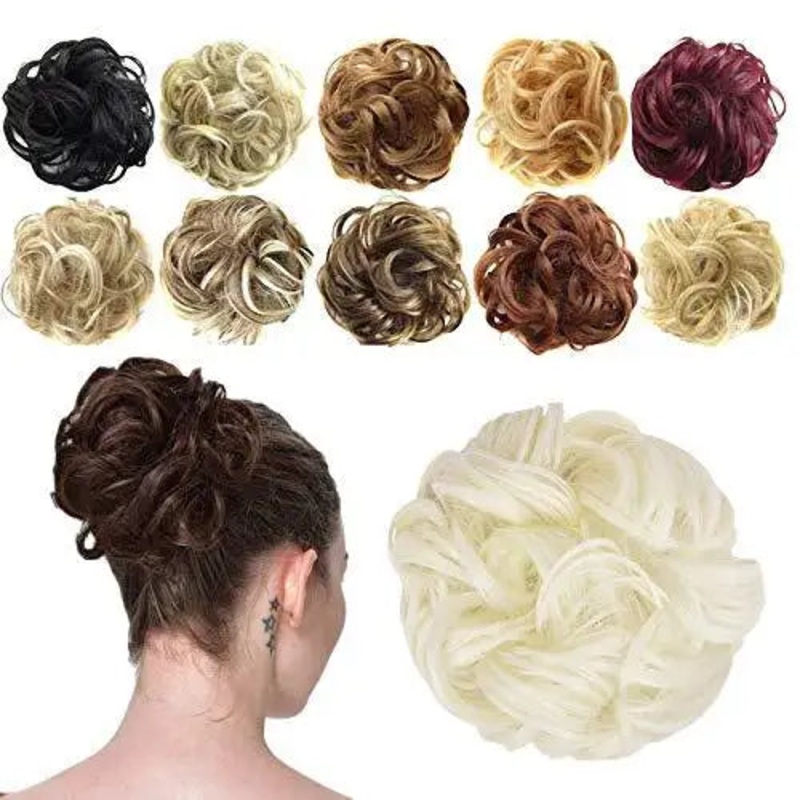 Curly Updo Synthetic Messy Hair Bun ExtensionMATERIAL: 100% Japanese kanekalon fibreQUALITY: Each hair bun extension is hand made.WEIGHT: 35-40 gramADJUSTABLE SIZE: The hair bun extension is very easy to wear with an elastic hair tieHOW TO WEAR: Interlock