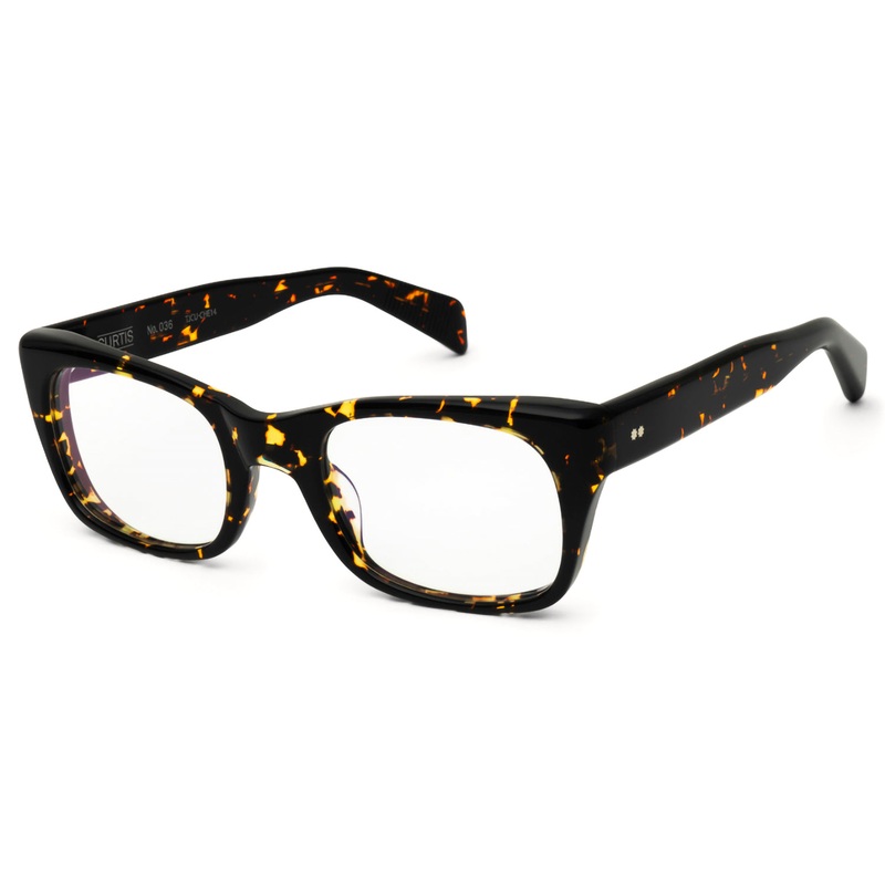 The Tejesta - Curtis features bold yet smooth angles, paired with thick temples for a distinctive profile. With a subtle cat-eye shape and sculpted contours, this unisex frame combines comfort with striking style. Includes Tejesta box, hard case, soft case