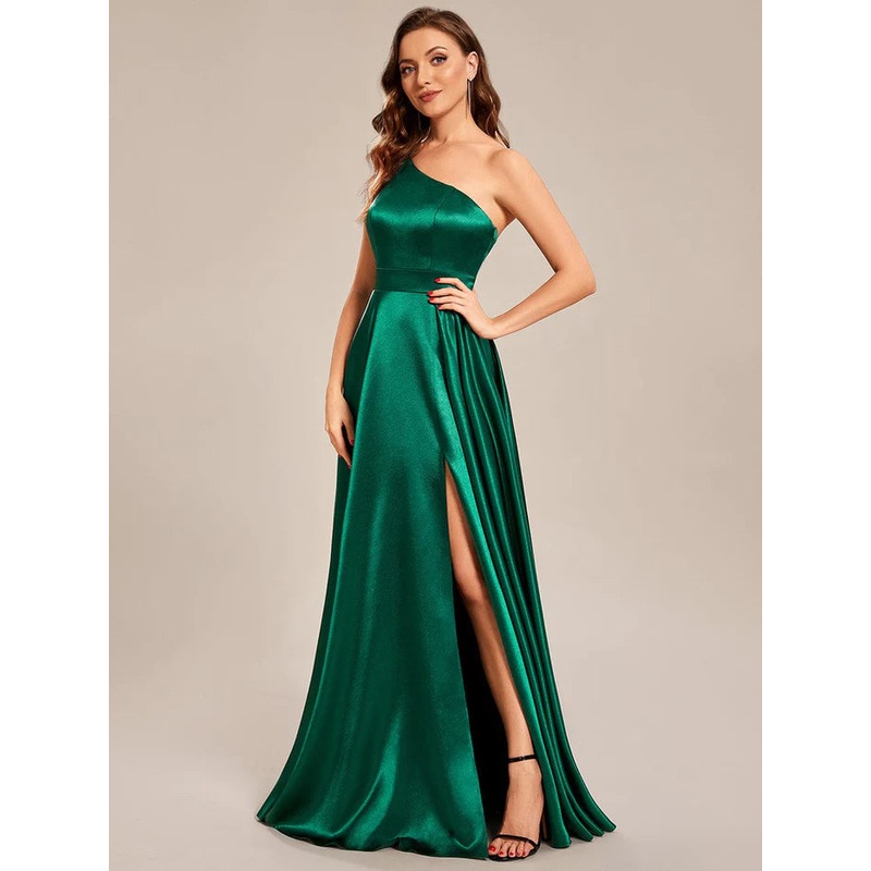 Custom Size One Shoulder Long Empire Waist Satin Prom Dress