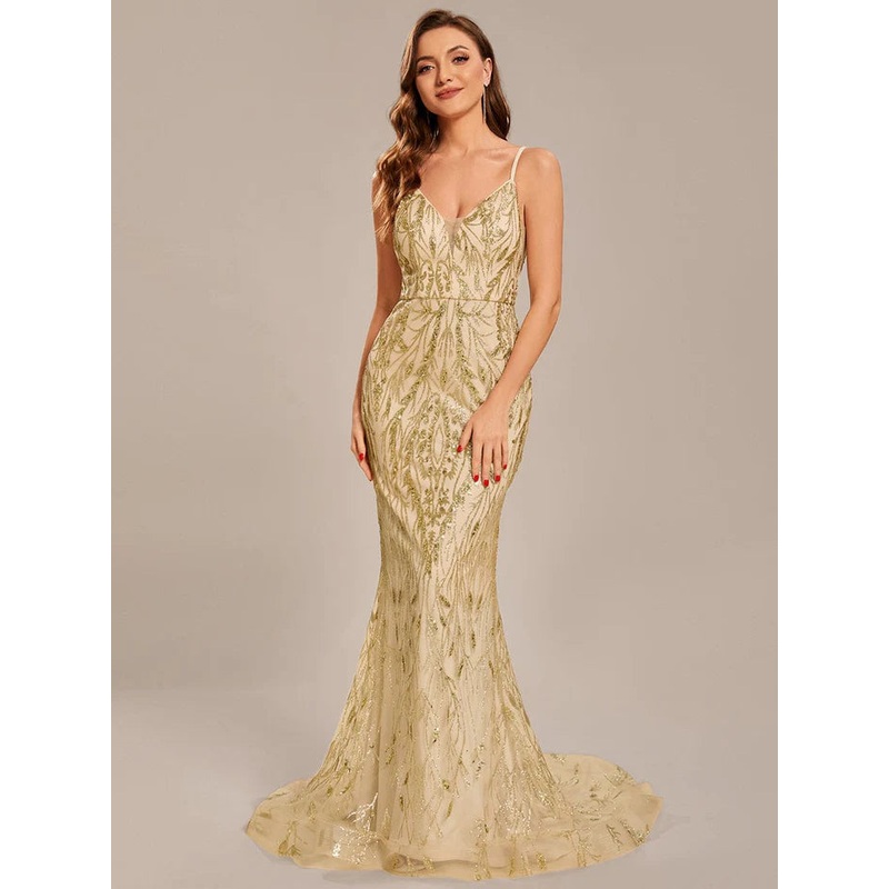 Custom Size Sequin Elegant Spaghetti Strap Long Mermaid Prom Dress