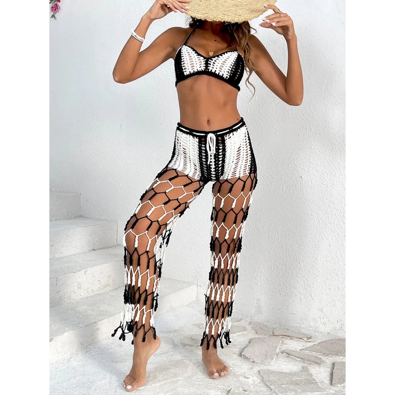 Cutout Halter Neck Top and Pants Two-Piece Swim Set Black S