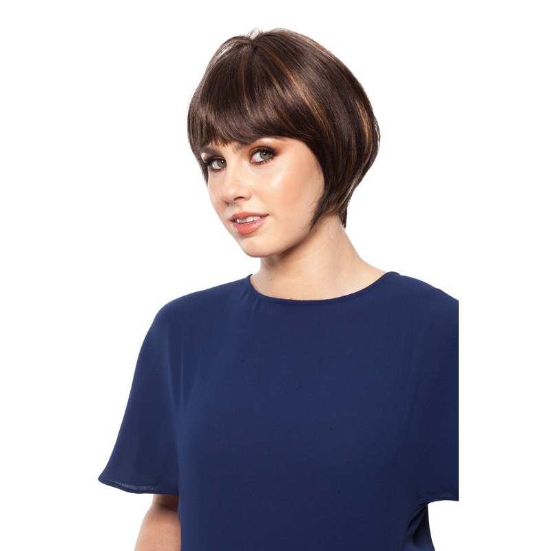 Cutting Edge Short Synthetic Hair WigWith face-framing bangs and a tapered nape, this all hand tied style produces excellent manageability and realistic and natural look.Monofilament Top: Fine nylon mesh with individual hairs hand-tied into the mesh. Allow