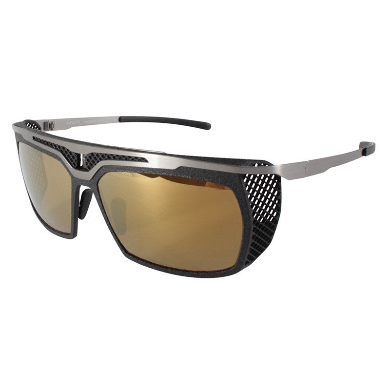 The Parasite Eyewear Cyber 3 | Anti-Matter offers a flat-top rectangle shape constructed of ultra-light weight stainless steel and a 3D printed frame front and side-shield. All Parasite frames are made in France and include a 1-year manufacturer warranty.