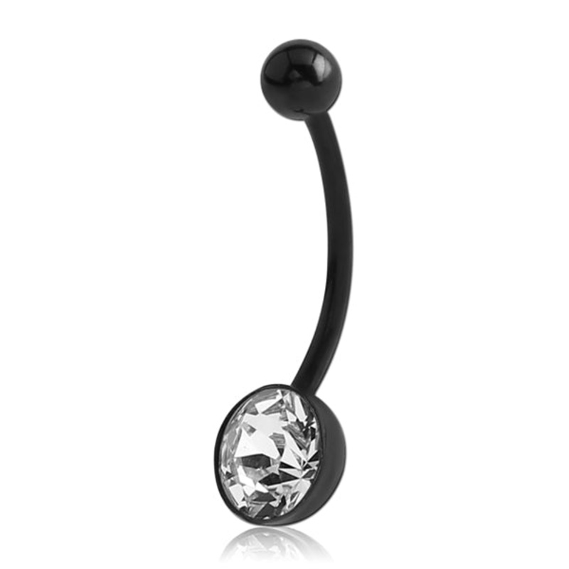 CZ Black Bioflex Belly Barbell 14g – 11/16″ long (18mm) Clear Black Bioflex
